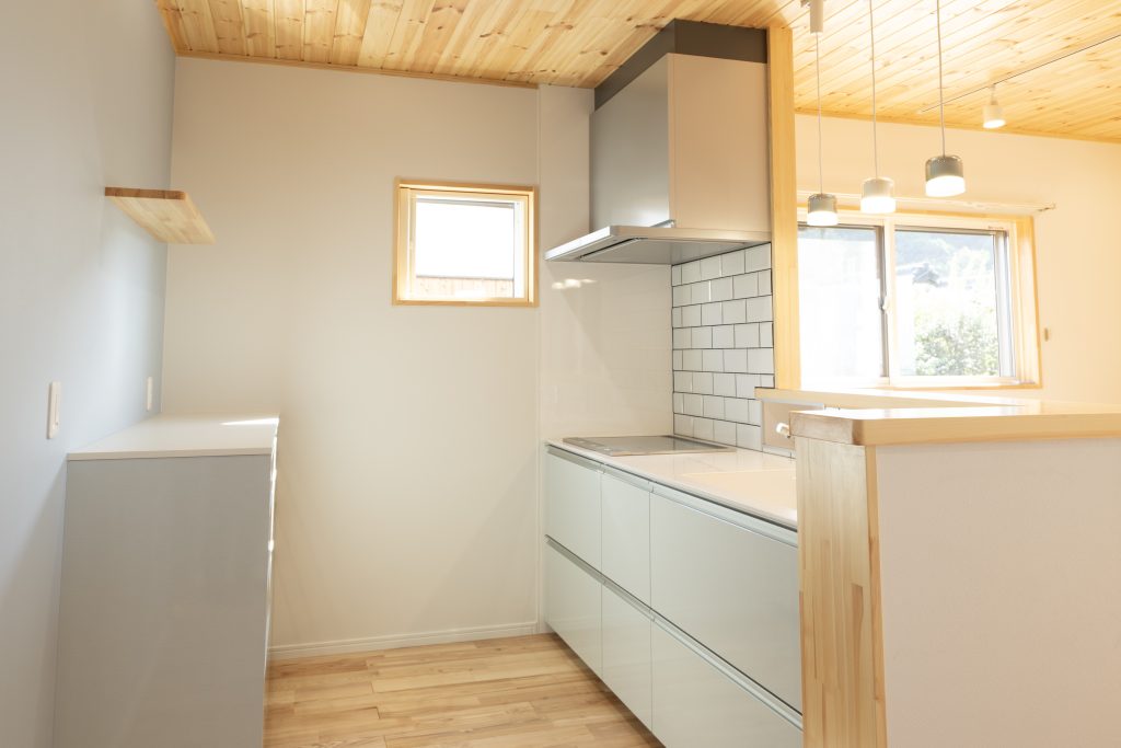 キッチンとダイニングは対面式で、家事をしながら家族の笑顔が見えるつくり。